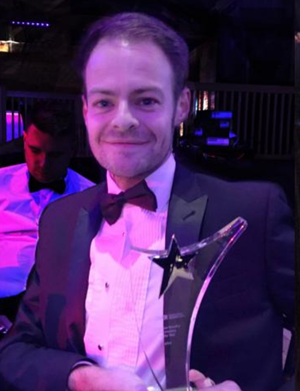 Jamie Tuffield picks up the UK’s Best Employee Benefit’s Intermediary on behalf of advo at the 2019 awards.