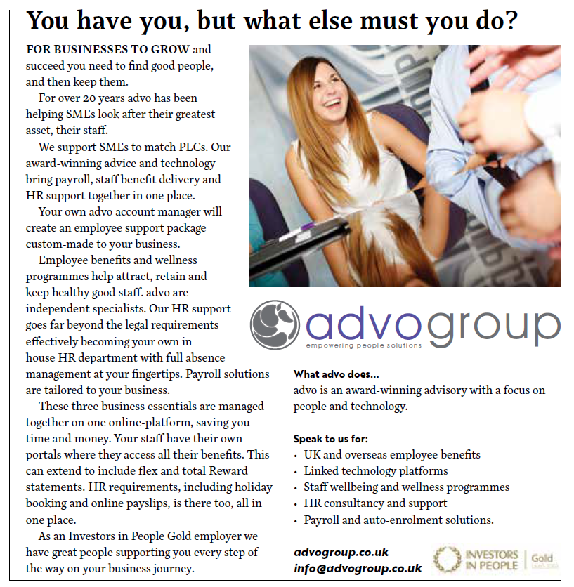 The Times and Standard ran a feature entitled ‘Be Your Own Boss’ which was targeted towards start-ups and SMEs. advo became involved as want to promote our linked technology and advice incorporating Payroll, HR and Employee benefits.