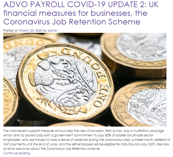 IT software providers will also have to update their PAYE software as well before businesses will be able to automatically add furloughed workers to their payroll systems. Once updates are received from HMRC, advo’s own payroll system will be adapted to the new rules.