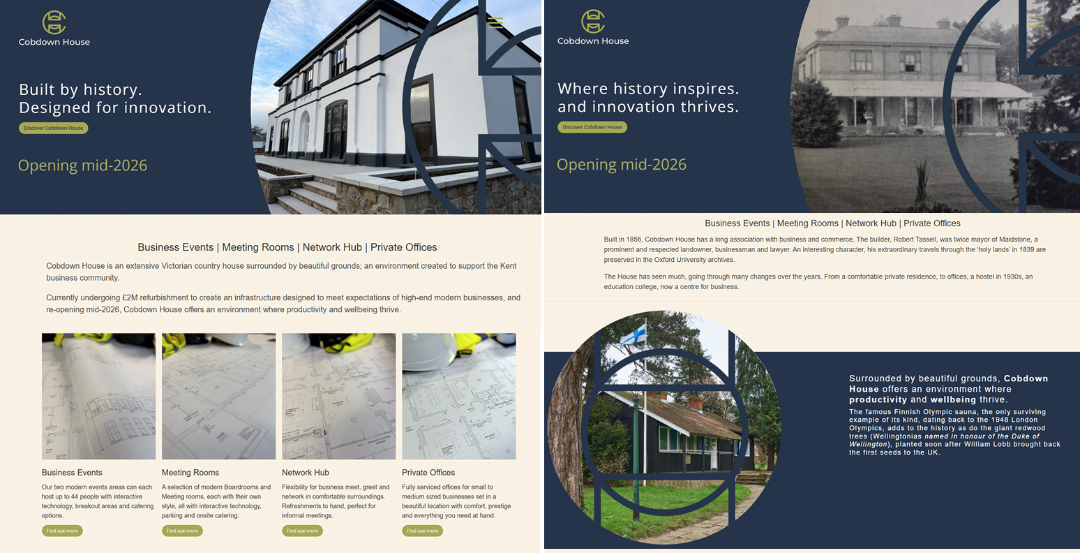 We are on track to open mid-2026. If you want to know more the available facilities, meeting hire and events hosting you can read more on the Cobdown website. https://cobdown.co.uk/
