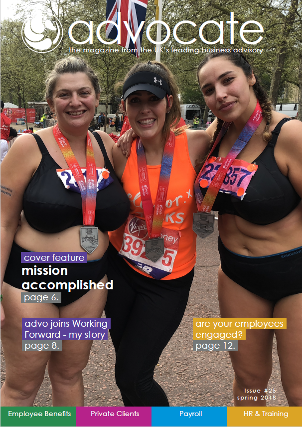 Our Spring 2018 edition of advocate is now available for you to read online featuring useful information to for HR and business owners and the latest advo news.