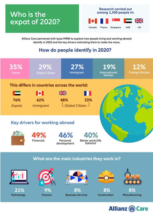 In the UAE, a region traditionally associated with ‘expats’, the term is still widely used by more than three-quarters of people in this category (76%). But that figure falls to 35% in Singapore, under a quarter in the UK (24%) and France (23%) and just 11% in Canada. In these countries, the term ‘global citizen’ is more widely used today, at 48% in the UK, 33% in France, 29% in Singapore and 26% in Canada.