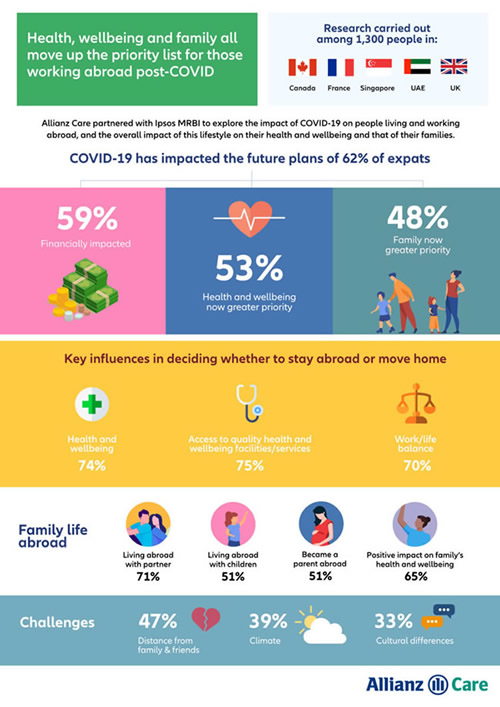 The research, which was carried out among 1,300 respondents by Ipsos/Mori, among expats in the UK, France, Canada, UAE and Singapore, found that almost three quarters (73%) of respondents said that the health and wellbeing of their family is now a crucial consideration in deciding whether to stay abroad or move back home.