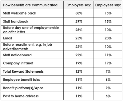 Appreciation of benefits is connected to how well they’re communicated, so the research also looked at the frequency and methods of communication.