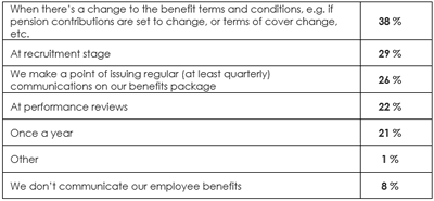 • 38% of employers communicate details of their benefits when there’s a change to the terms and conditions of a particular benefit