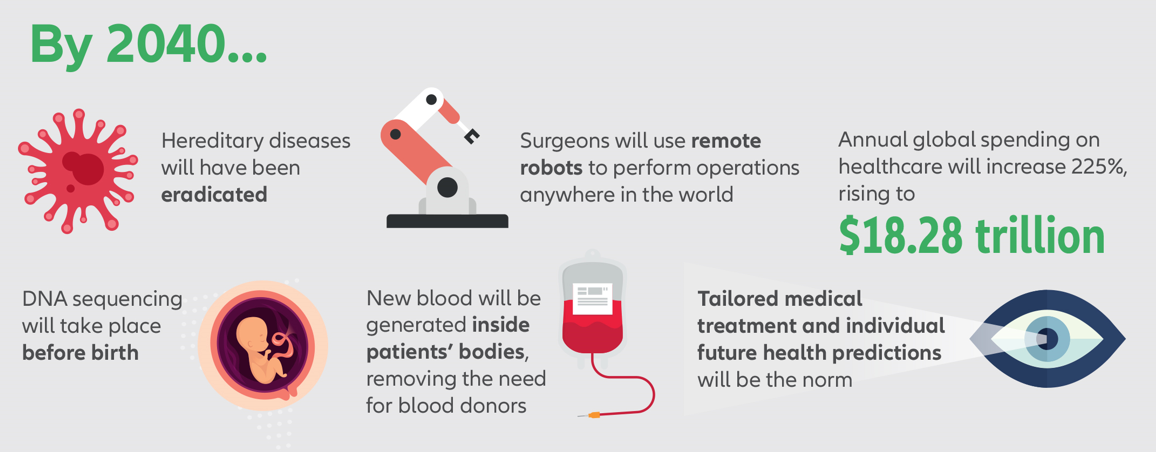 Authored by renowned futurologist Ray Hammond, the report is part of a wider ‘The World in 2040’ series and presents likely future developments and trends in healthcare between now and 2040.