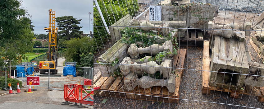 Work continues apace both inside and outside of Cobdown House. The main outside work is the commencement with the replacement of the original bridge. Although the original bridge, we believe built at the same time as the main house in 1865, has been strengthened and updated over the years it is not fit for purpose for the increase in traffic and heavy loads. The new modern bridge will sit over the original.