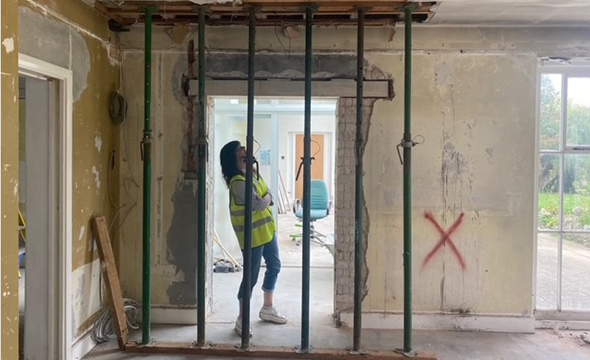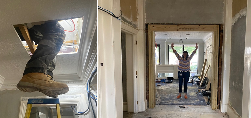 Inside, the house still looks chaotic, with holes in walls, floors and ceilings as the new infrastructure takes shape.