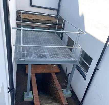 Here the new frame outside for hosting the new HVAC system that will give constant temperature control in each room all-year round. Here hidden away in one of the internal courtyards.