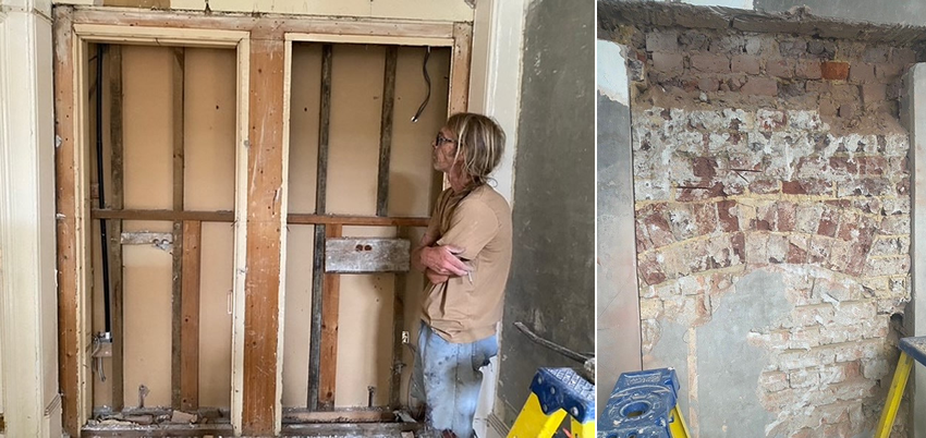 Discoveries of the original house continue as we open up walls added over time. There was a head scratching moment when removing plasterboard with one room we discovered two doors, side by side, going into the same room, one the original (right), the other we believe a 1930s addition.
